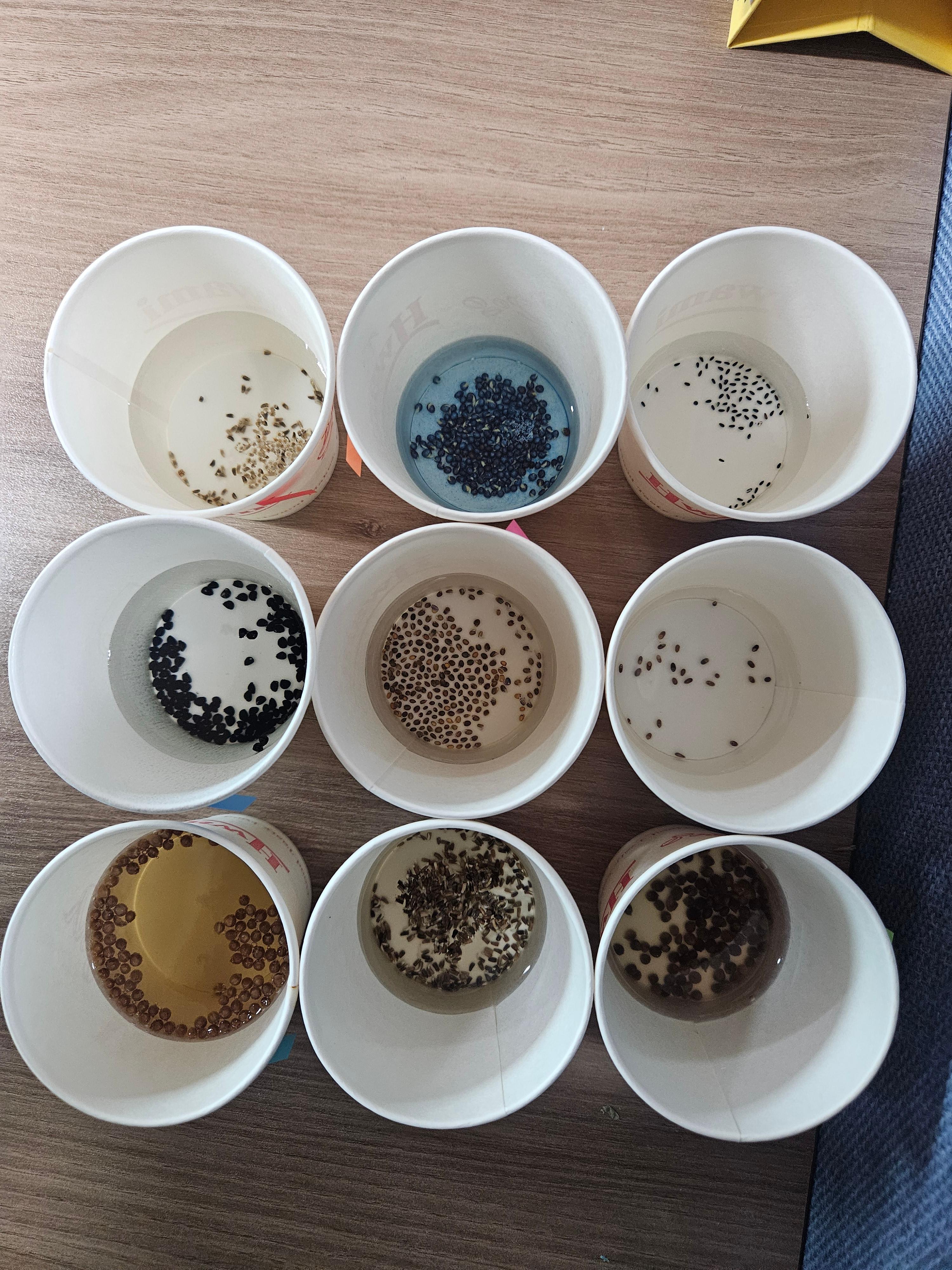 [Day 3] 종자의 색소에 따라 물의 색이 바뀌는 것은 처음 안 사실이에요. 조금씩 씨앗이 발아하는 모습을 관찰할 수 있네요.