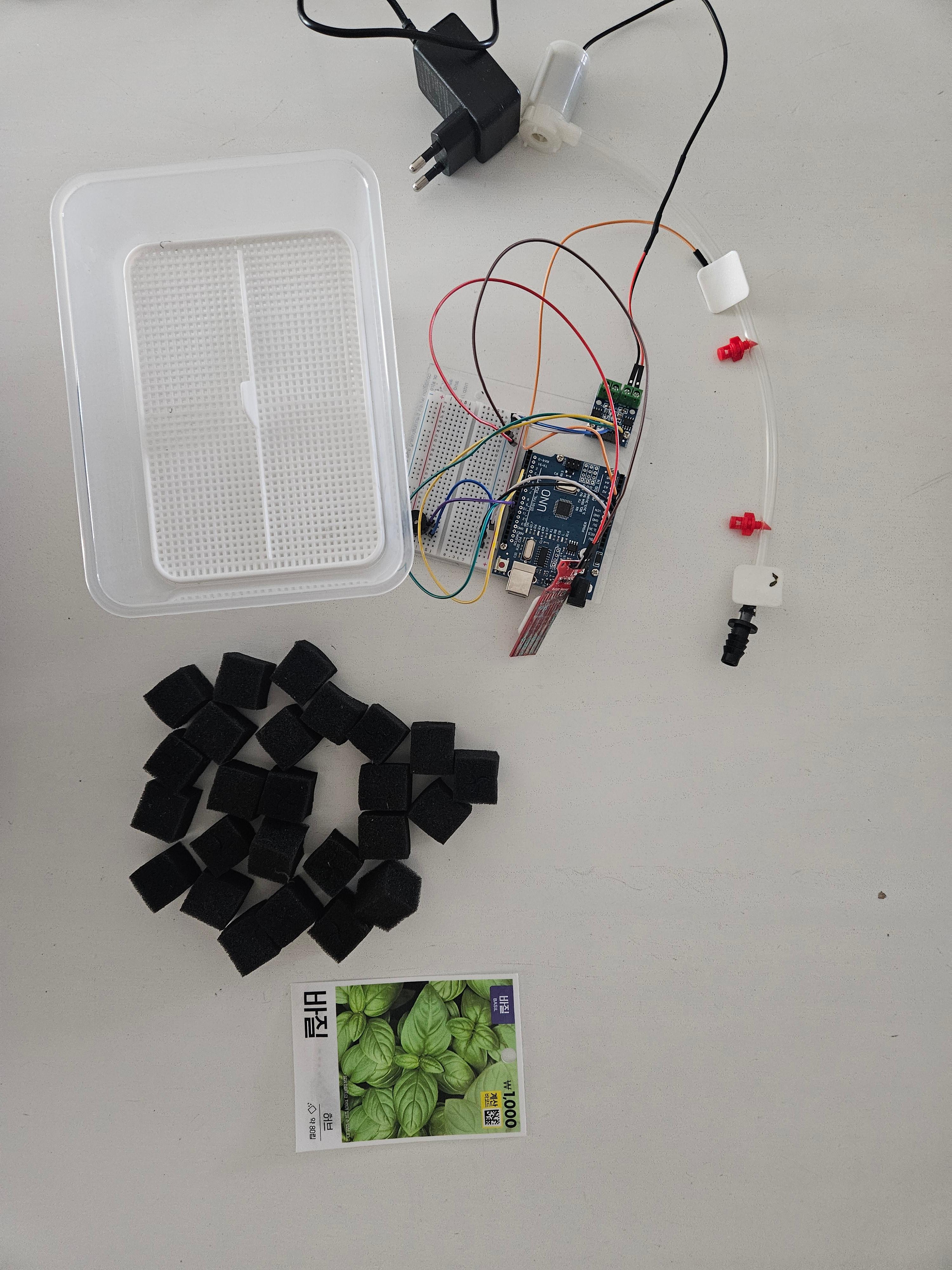 준비물이에요. 아두이노 새싹재배키트를 이용했어요.