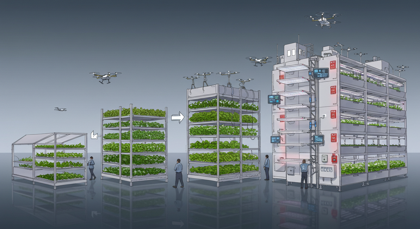 수직 농장은 단기간에 대규모로 확장하는 것보다, **단계별로 리스크를 관리하며 성장하는 방식**이 가장 효과적입니다.